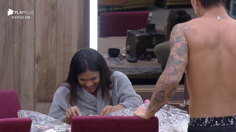 Não tem jeito, por mais que o alimento seja feito com carinho, às vezes não dá para comer. Biel preparou um lanche com ovo para Tays, mas a peoa não conseguiu comer por causa da gema mole e acabou passando o prato para Stéfani. Olha só! .