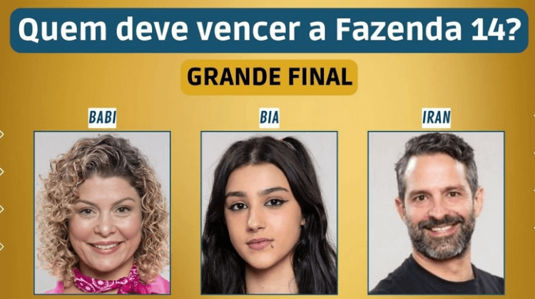 R7 Votação + Enquete A Fazenda 2022 Grande Final (14/12): Babi, Bia ou Iran, quem ganha o reality show?