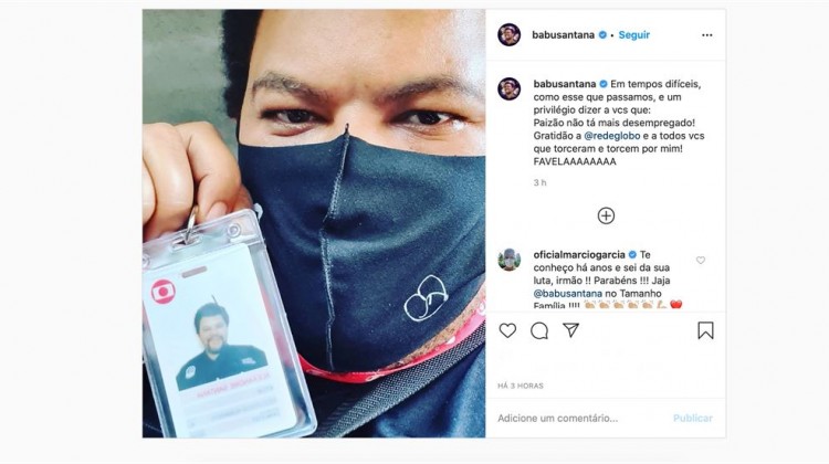 “Em tempos difíceis, como esse que passamos, e um privilégio dizer a vocês que: Paizão não tá mais desempregado! Gratidão a @redeglobo e a todos vocês que torceram e torcem por mim! FAVELAAAAAAAA”, escreveu Babu em sua publicação.