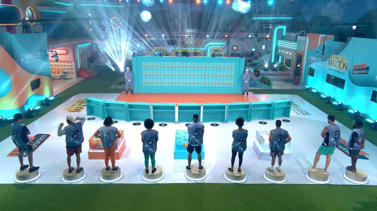 "Vocês têm que encontrar as emballagens de Maxton iguais aos cards", avisa o apresentador. Quem encontrar as quatro embalagens primeiro vence a Prova do Líder.