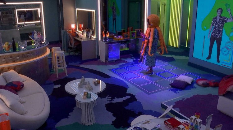 Depois de avisar que não queria conversa e de se irritar com a atitude de Natália no Jogo da Discórdia, Eliezer vai vestido de polvo para o Quarto do Líder.