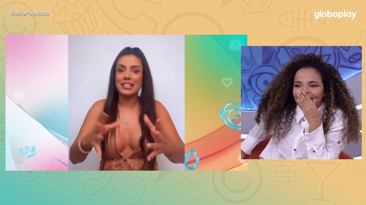 “Oi, amiga! Estou morrendo de saudades. Aqui é uma loucura e eu tenho três novidades pra te contar. Uma delas é que a gente tem uma fanfic, um fã clube enorme chamado 'Pitanda', a coisa mais linda do mundo. As pessoas sentiram nossa amizade, nosso amor e somos muito amadas, deu tudo certo, amiga. Nossas marolas nunca tiveram erradas", brinca a carioca, que foi a 15ª eliminada.