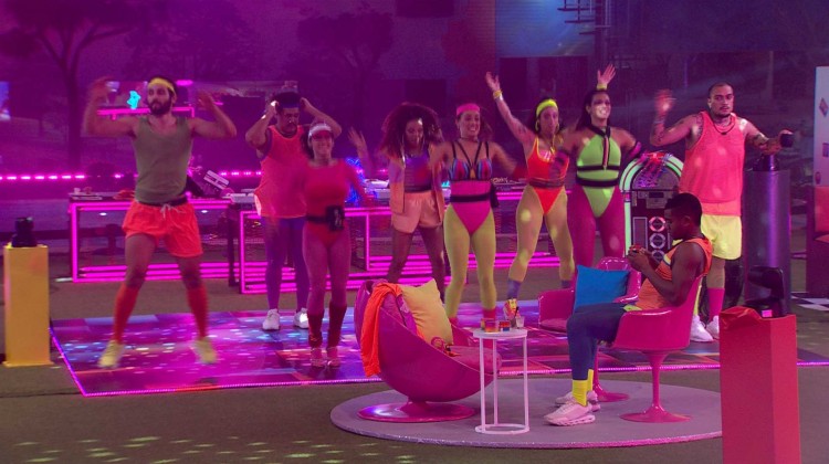 Na Festa da Líder Giovanna, os brothers do BBB 24 se reúnem na pista para mostrar todo o seu talento fazendo a "Dança do Quadrado". O top 10 da edição está todo reunido, com exceção de Davi, que está sentado próximo à pista de dança.
