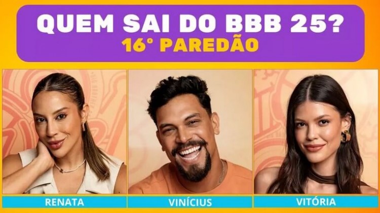 Enquete BBB 25 16º Paredão: quem deve sair entre Renata, Vinícius ou Vitória?