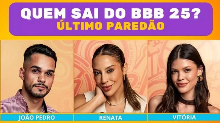 Enquete BBB 25 último Paredão: quem sai do reality, João Pedro, Renata ou Vitória?