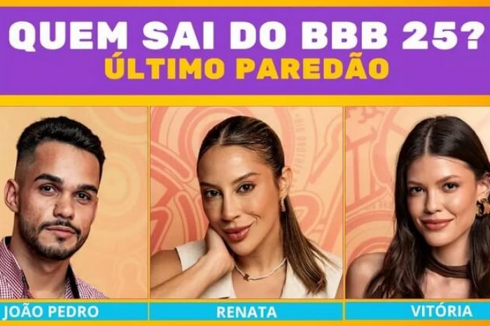Acabou a prova de resistência e a enquete BBB 25 do último Paredão está no ar! Opine e vote agora! Quem deixará o reality sem chance de chegar à grande final: João Pedro Siqueira, Renata Saldanha ou Vitória Strada? O mais votado sairá da casa e os dois restantes continuam na disputa pelo prêmio final.
