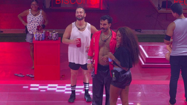 Durante a Festa do BBB 25, que acontece na madrugada deste sábado (25), Mateus interrompe a conversa entre Vitória Strada e Maike. O brother, que está acompanhado de Giovanna, convida os dois a voltarem para a pista: "Vitória, Maike, vem para cá dançar". Vitória se recusa e responde que está conversando.