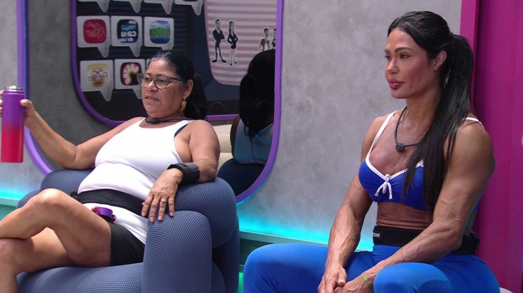 Delma aproveita a companhia de Gracyanne Barbosa na academia, na manhã desta quarta-feira (29), para matar uma curiosidade sobre Carnaval. A dona de casa pergunta sobre o tapa-sexo, usado por muitas musas nos desfiles das escolas de samba.