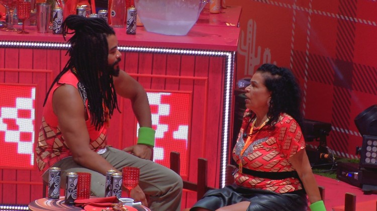 Durante a Festa do BBB 25, que acontece na madrugada deste sábado (25), Diogo Almeida e Vilma conversam sobre uma das duplas colocadas Na Mira do Líder por filho e mãe.
