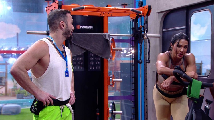 Durante uma conversa na academia neste sábado (25), Gracyanne Barbosa se incomodada com a atitude de Mateus, que falou que se sente desconfortável e deixou o grupo, sendo seguido por sua dupla, Vitória Strada.