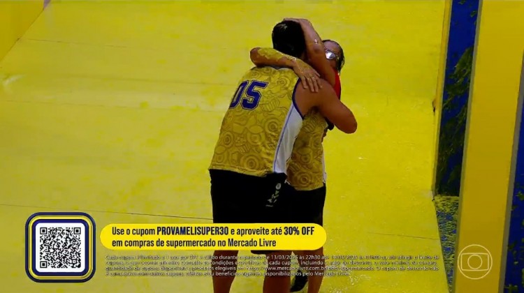Guilherme vence a nona Prova do Líder do BBB 25, após chegar à última fase ao lado da sogra, Delma. O brother é parabenizado por Tadeu Schmidt e, sem perder tempo, abraça sua ex-dupla, que comemora com beijos na testa do fisioterapeuta.