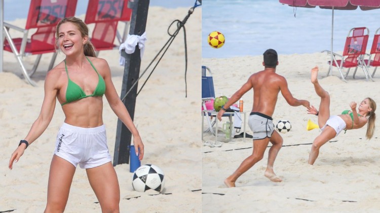 Jade Picon mostra habilidade em futevôlei na praia e exibe coxas torneadas