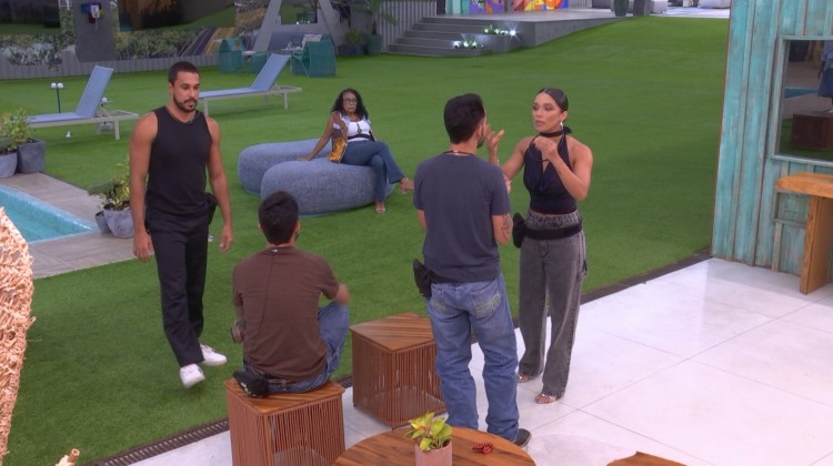 Após o Sincerão desta segunda-feira (3), João Pedro levanta a possibilidade que Renata e Eva não confiem no grupo com eles. Ao ouvir a teoria do goiano, na área externa da casa do BBB 25, a fisioterapeuta o interrompe: