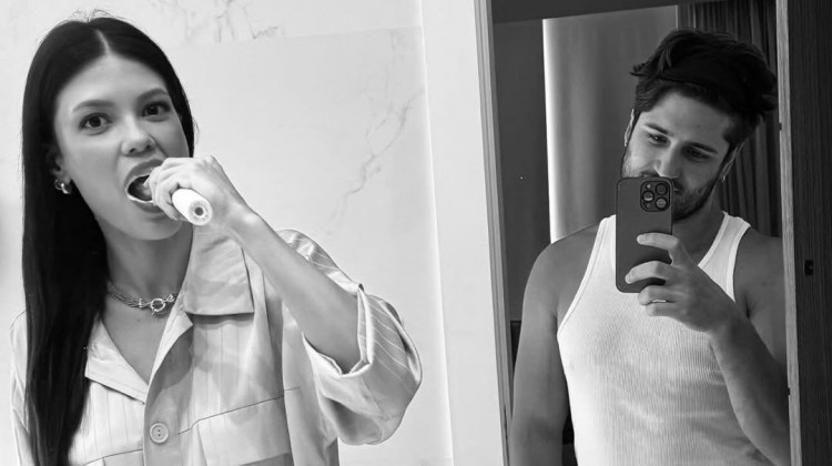 Depois do almoço, Vitória Strada observa sua barriga no espelho quando Diogo Almeida pergunta à sister: "Você vai querer engravidar?".