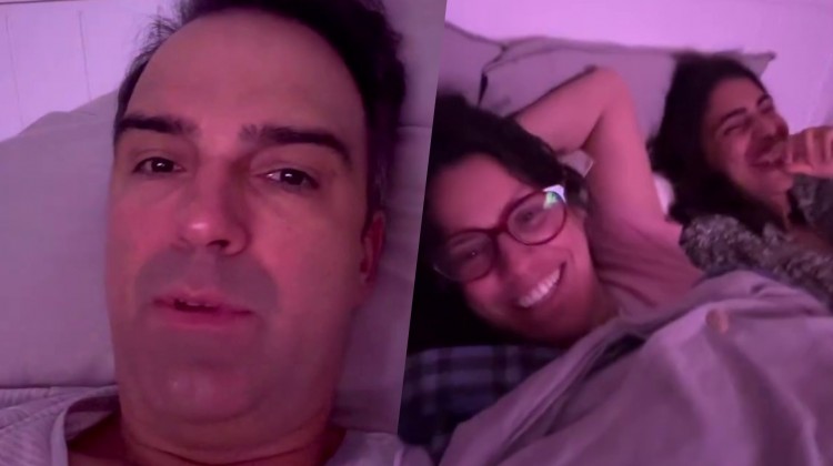 Tadeu Schmidt acompanha after do Show de Quarta com a família: 'Eles com cooler e a gente com cobertor'