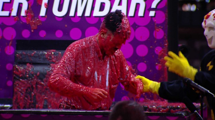 Em seguida, o brother cai na gosma e dispara: "Misericórdia, Tadeu!". Os brothers caem na risada.